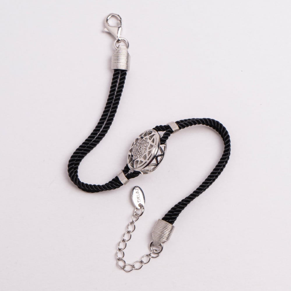 تتميز سوارة الفضة بزخرفتها المرصعة بأحجار الزركون البيضاء، مما يضفي عليها لمسة براقة وجاذبية. تتميز الزركون بلمعانها الجميل وتألقها الذي يشبه الألماس، مما يجعل السوارة تلفت الأنظار وتكمل أي إطلالة بأناقة.